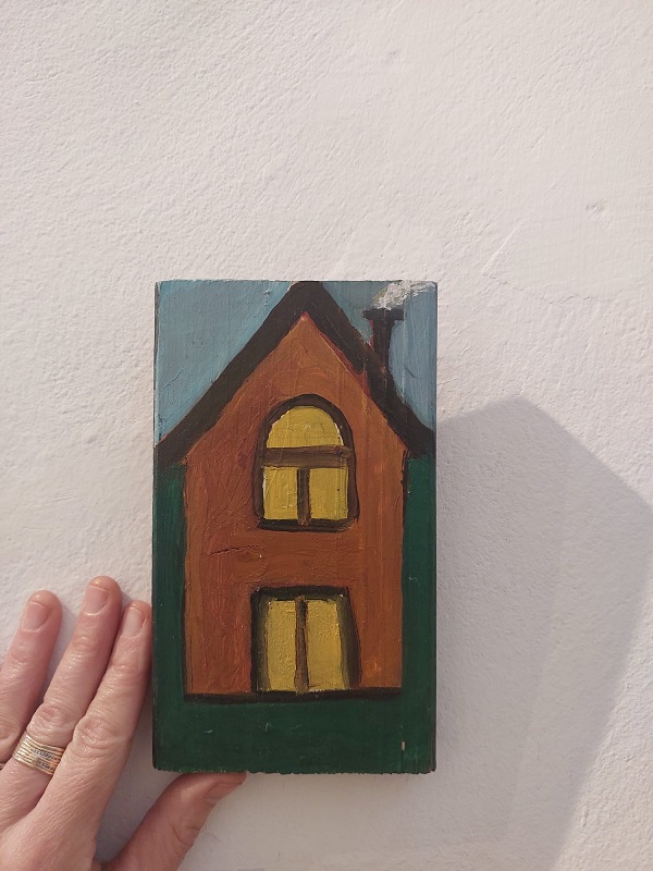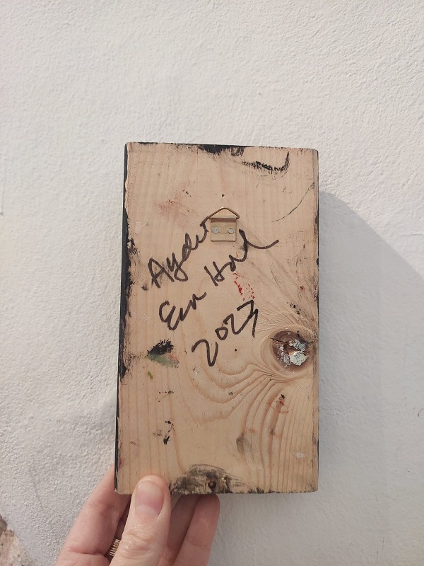 עבודה ייחודית רדי מייד (ציור על ריבוע עץ) של האמנית אילת שפר, המתגוררת ויוצרת בעין הוד.