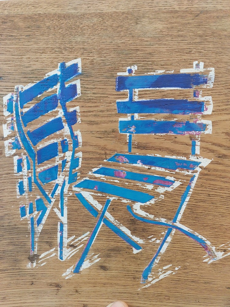 כסאות, ציור מקורי על עץ של האמנית קרין ינקורט