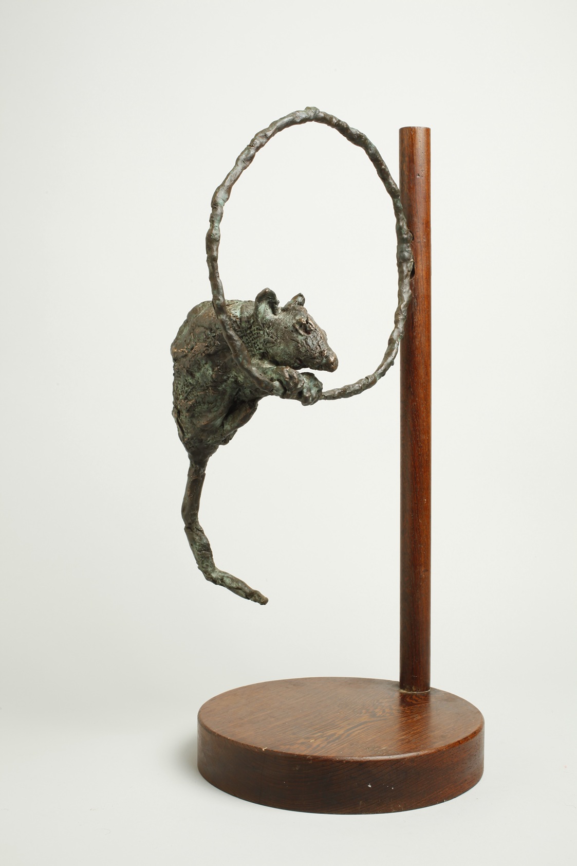 פסל זה של האמנית דורותי רובינס מוצג במקבץ בתערוכה "הקוסם, הלוליין ועכברוש הקרקס".