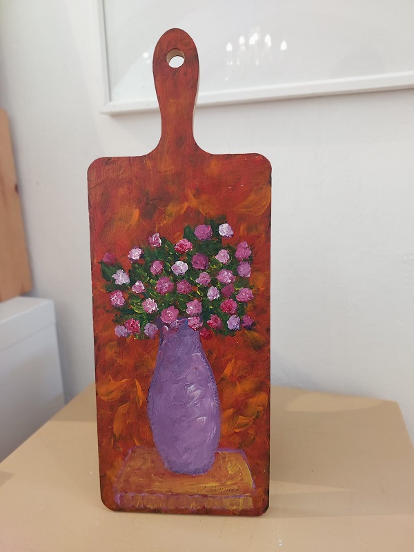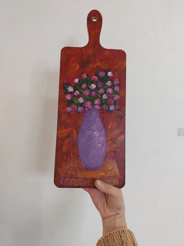 ציור מקורי בצבעי שמן על גבי קרש חיתוך