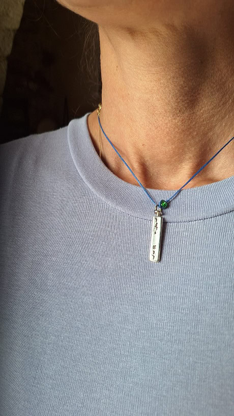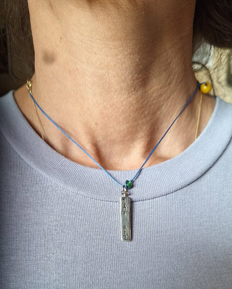 השרשרת מגיעה עם חוט שעווה כחול (חוט עמיד מאוד) ובתוספת קישוט של חרוז עץ בסוגר.