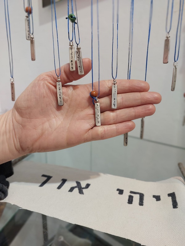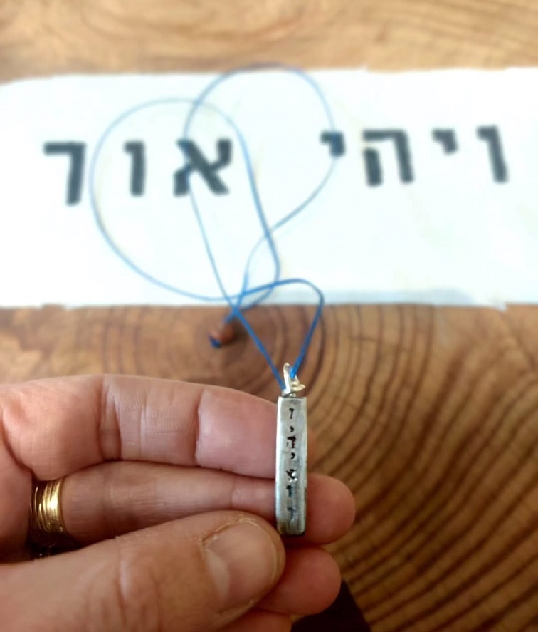 תליון כסף עם הכיתוב "ויהי אור"