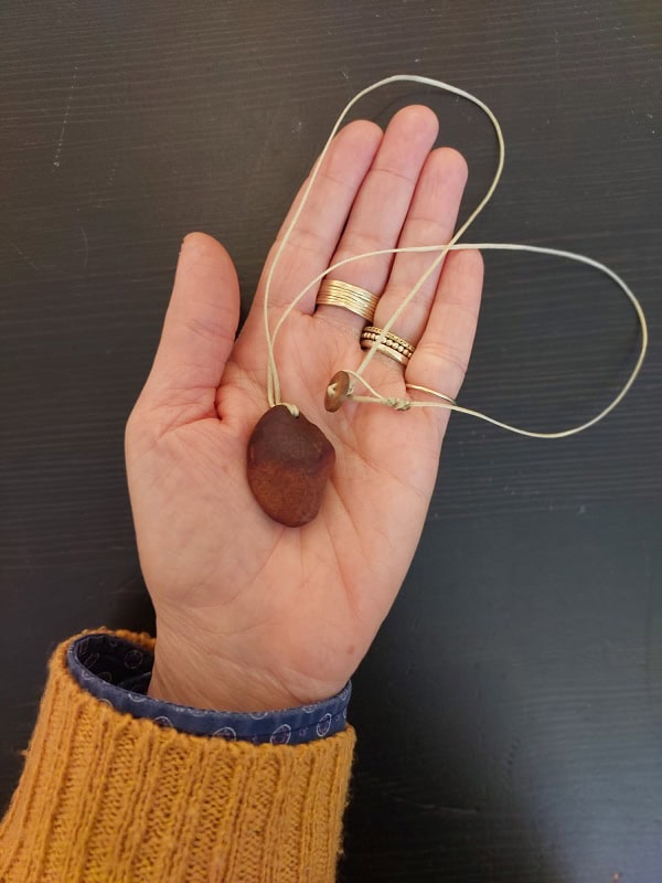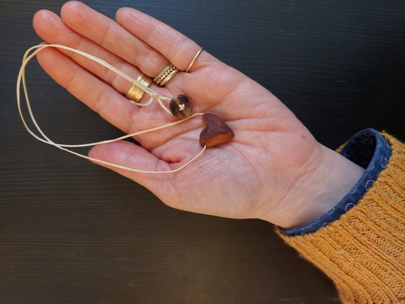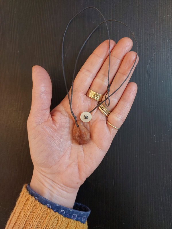 שרשראות עם תליוני אבוקדו מסדרת "LOVACADO" עשויים מגלעיני אבוקדו.